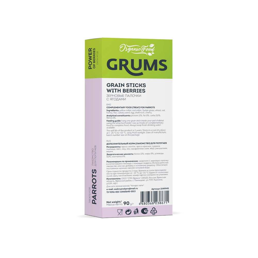 Зерновые палочки GRUMS станут аппетитным дополнением к основному рациону попугаев. Побалуйте своего питомца вкусным и полезным деликатесом без вреда для его здоровья.