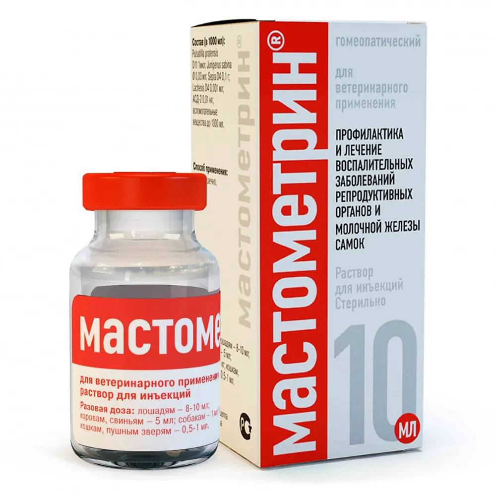 Мастометрин (Mastometriti®) - препарат для профилактики и лечения воспалительных заболеваний репродуктивных органов и молочной железы самок животных. Обладает противовоспалительным действием, повышает тонус и сократительную способность миометрия, восстанавливает структуру и функцию эндометрия, стимулирует тканевой иммунитет и повышает бактерицидные свойства цервикальной слизи. Мастометрин назначают самкам крупного рогатого скота, свиней, лошадей пушных зверей, кошкам, собакам для лечения воспалительных заболеваний репродуктивных органов и молочной железы: острого, хронического и субклинического эндометрита, синдрома ММА, острого серозного и катарального мастита а также профилактики послеродовых осложнений.