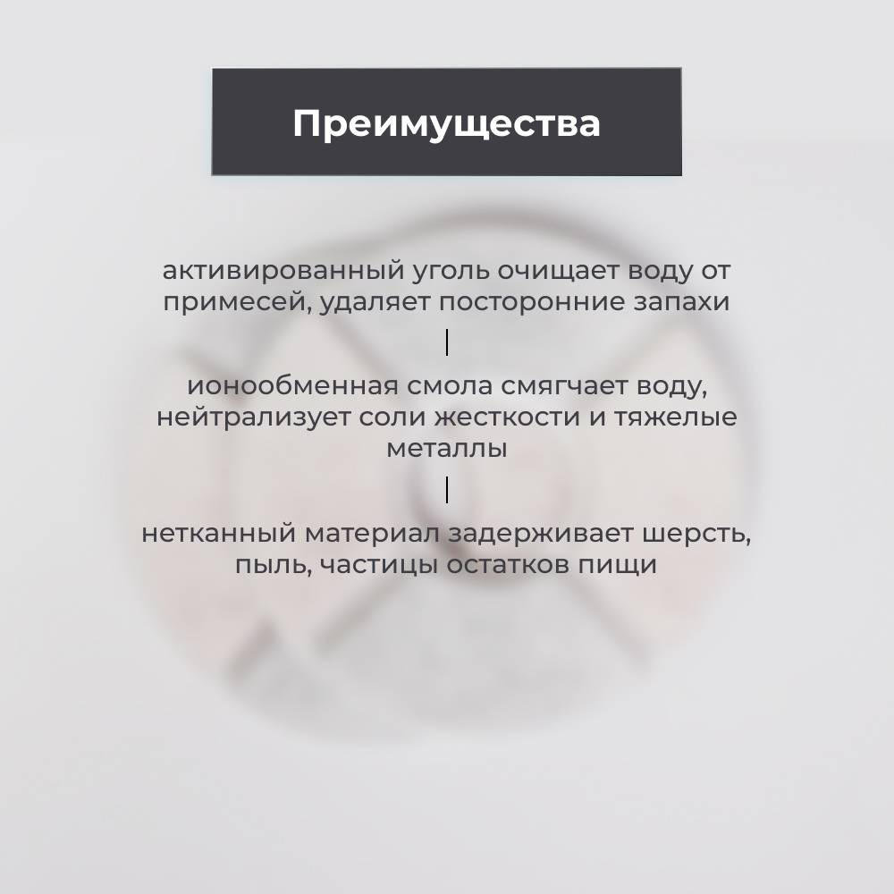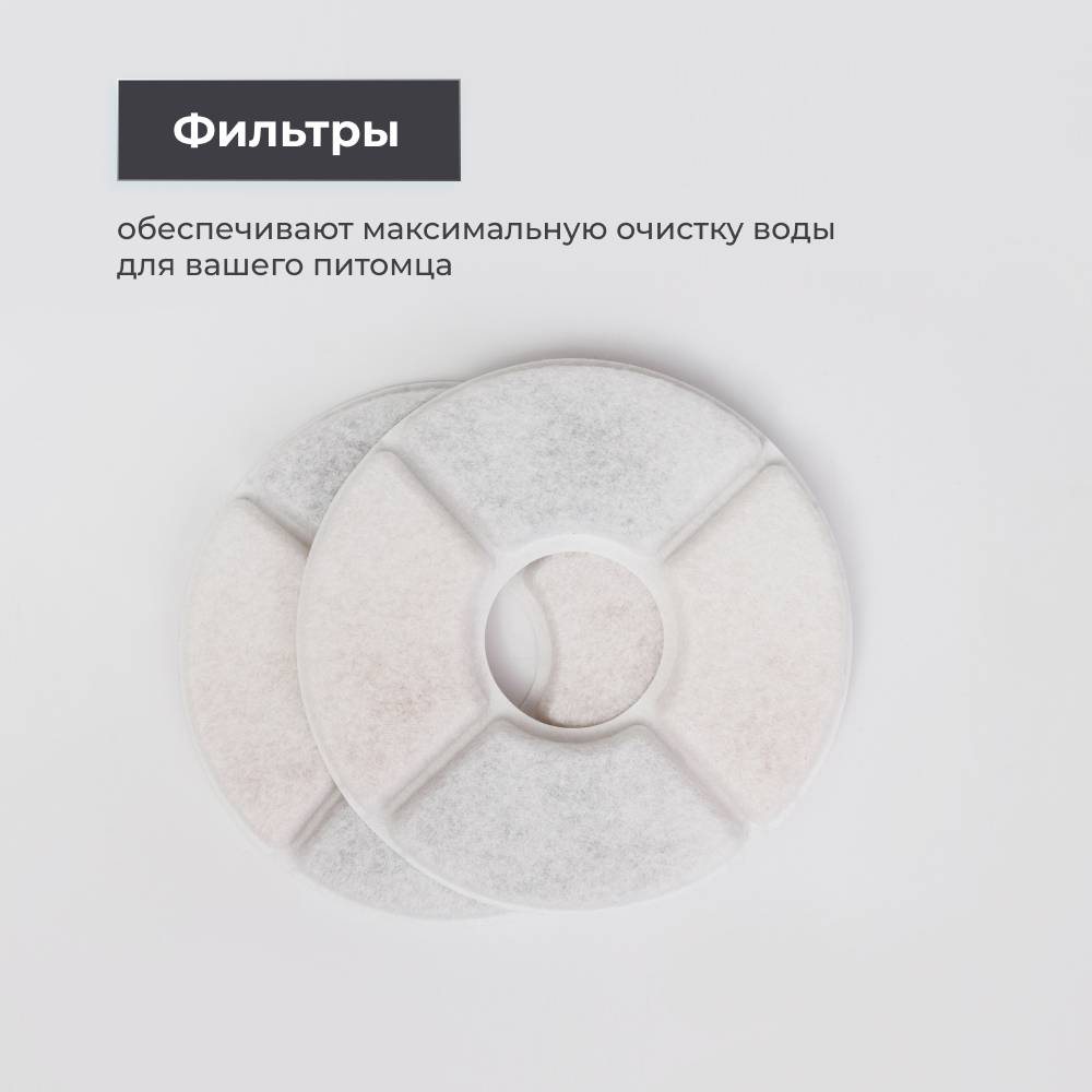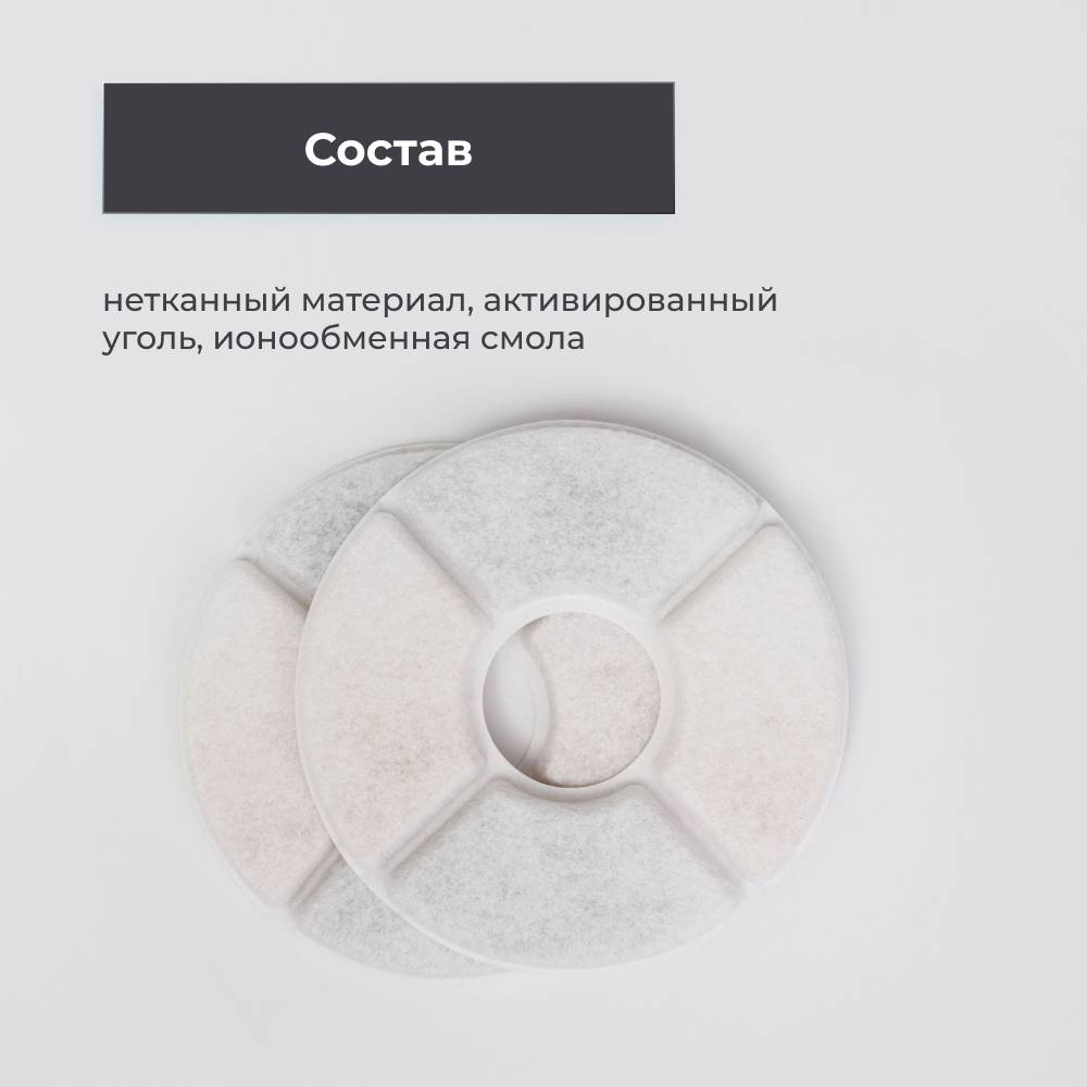 При использовании фонтана 24/7 рекомендовано производить замену фильтра 1 раз в два месяца. Хранить в сухом месте. Перед первым использованием промойте фильтр проточной водой.