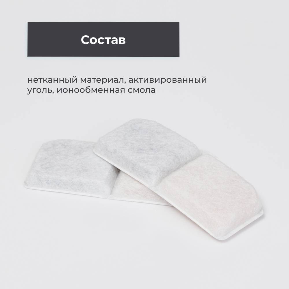 При использовании фонтана 24/7 рекомендовано производить замену фильтра 1 раз в два месяца. Хранить в сухом месте. Перед первым использованием промойте фильтр проточной водой.