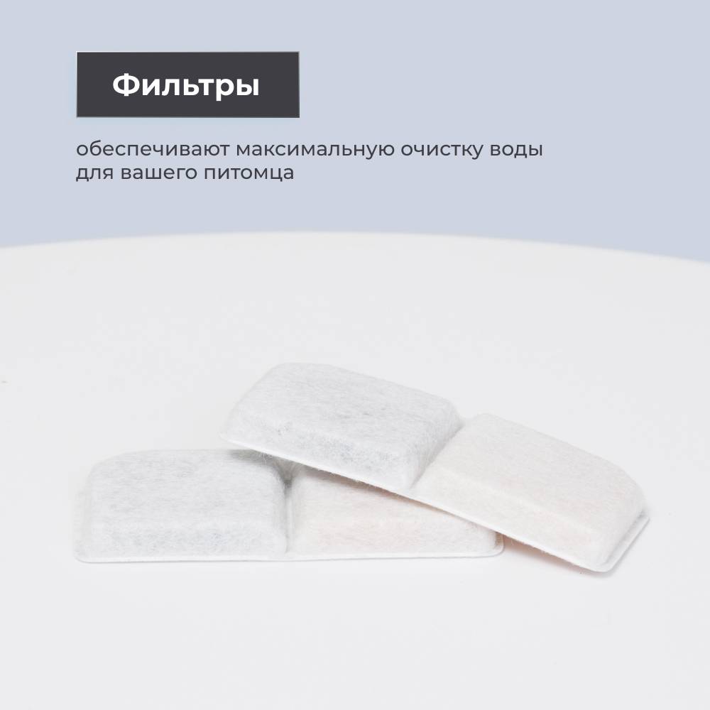 При использовании фонтана 24/7 рекомендовано производить замену фильтра 1 раз в два месяца. Хранить в сухом месте. Перед первым использованием промойте фильтр проточной водой.