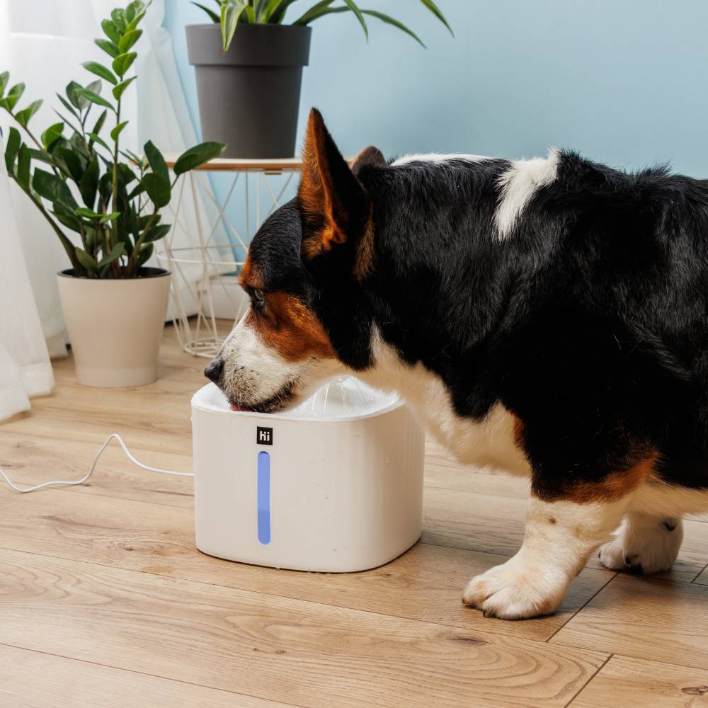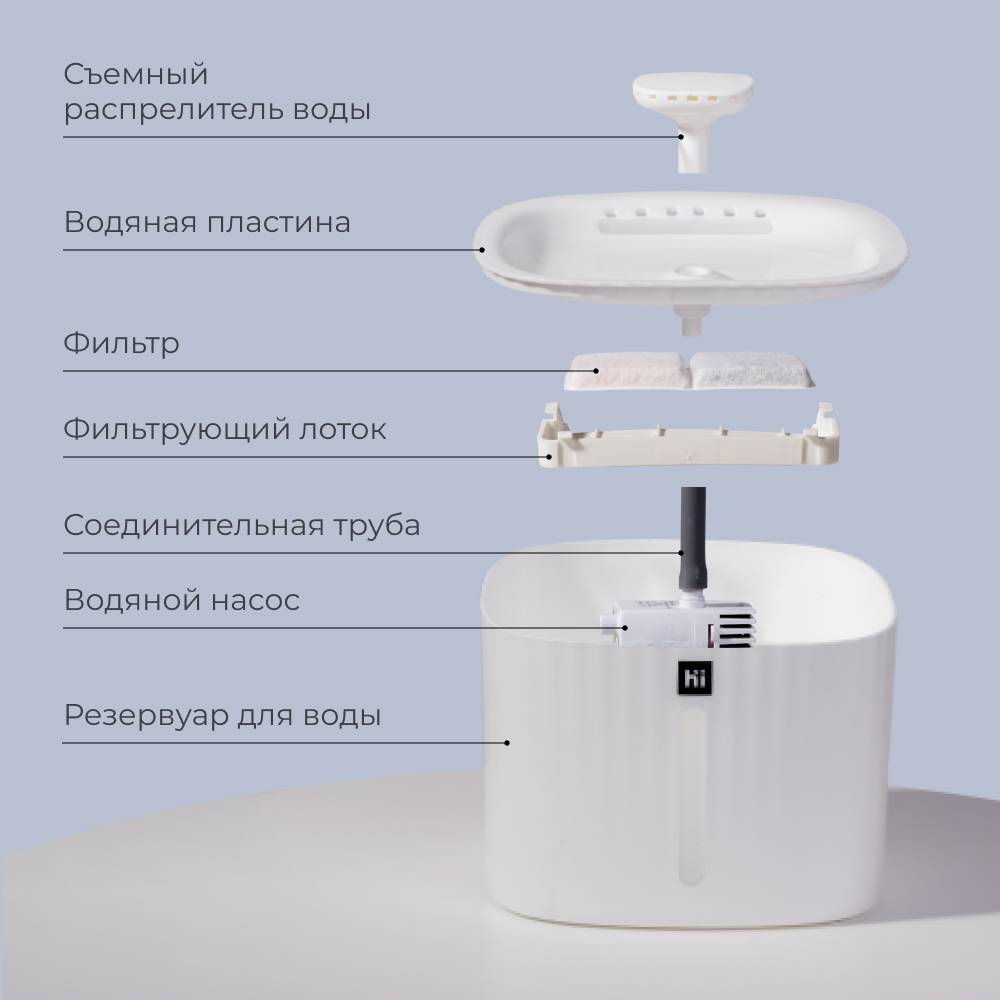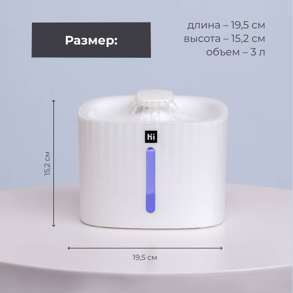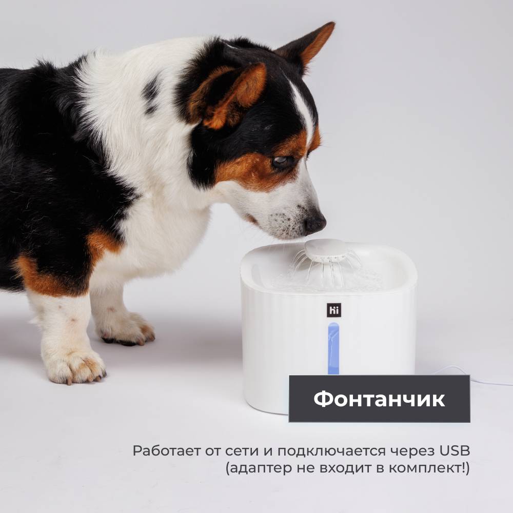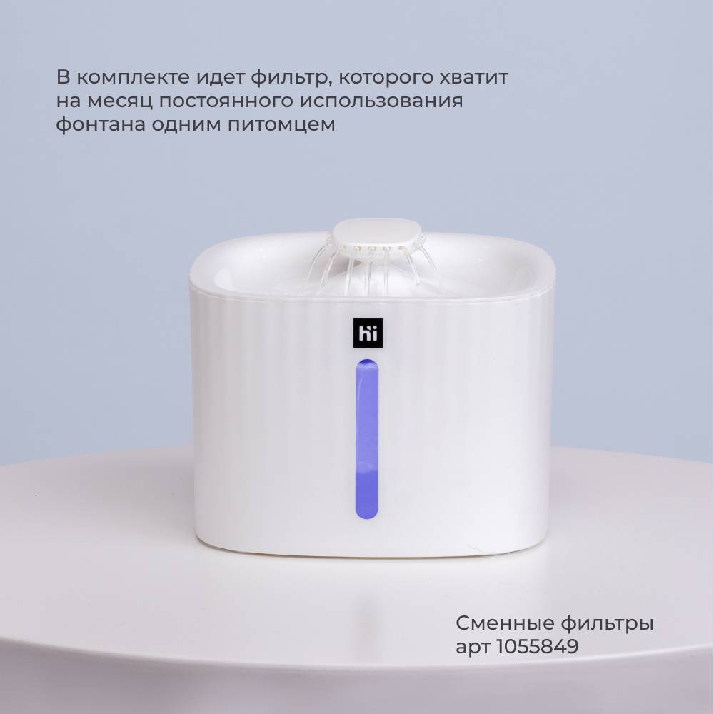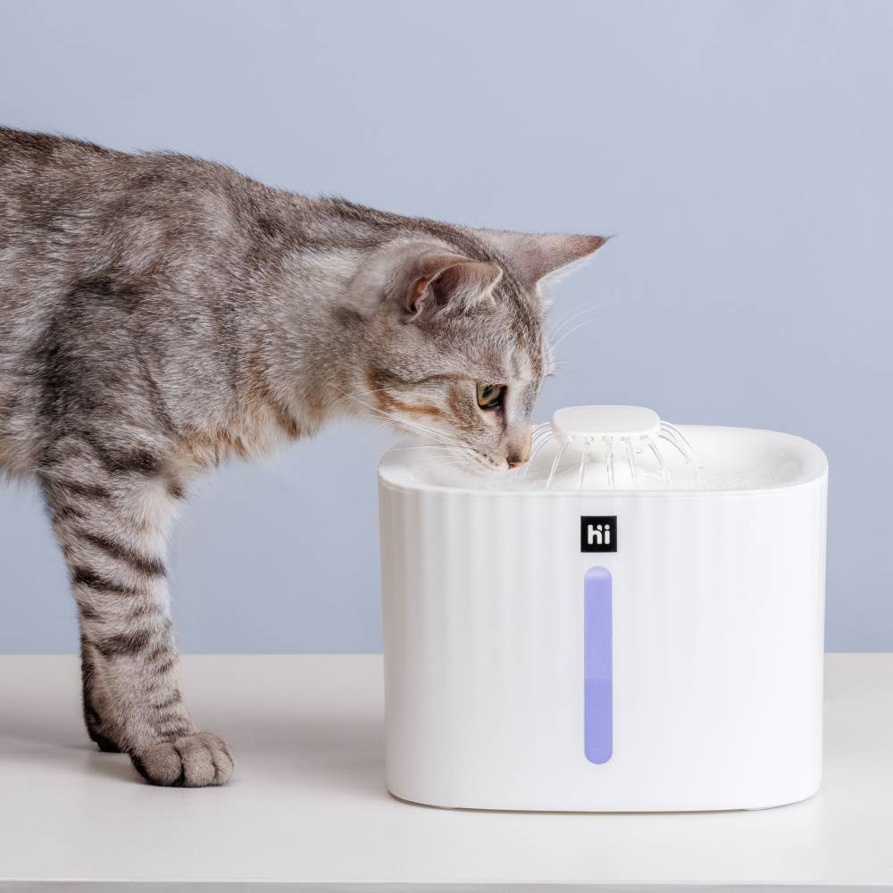 Стильный фонтанчик от бренда HiPet обеспечит вашему питомцу постоянный доступ к чистой воде.