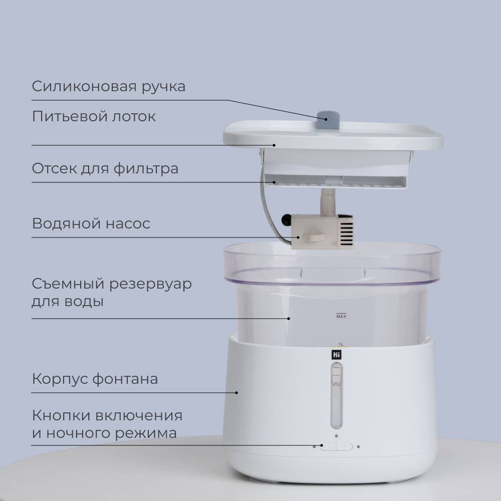 - Фонтанчик удобен в использовании и прост в уходе.