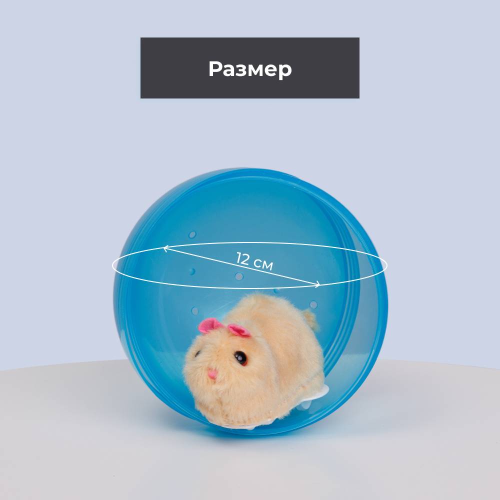 Размеры: диаметр шара 12 см, хомяк: 9х5,6х5 см.