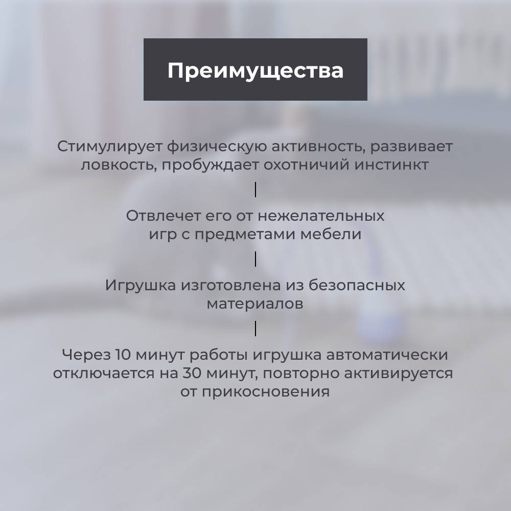 - Пробуждает в кошке охотничий инстинкт, стимулирует физическую активность, развивает ловкость.