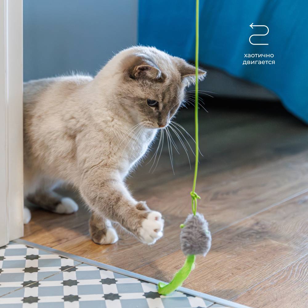 Интерактивная игрушка Дразнилка с мышкой от бренда HiPet предназначена для самостоятельной игры усатого питомца, вам остается только наблюдать за его активными действиями.