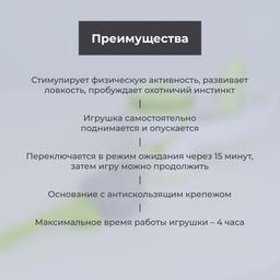 - Игрушка стимулирует физическую активность, развивает ловкость, пробуждает охотничий инстинкт.