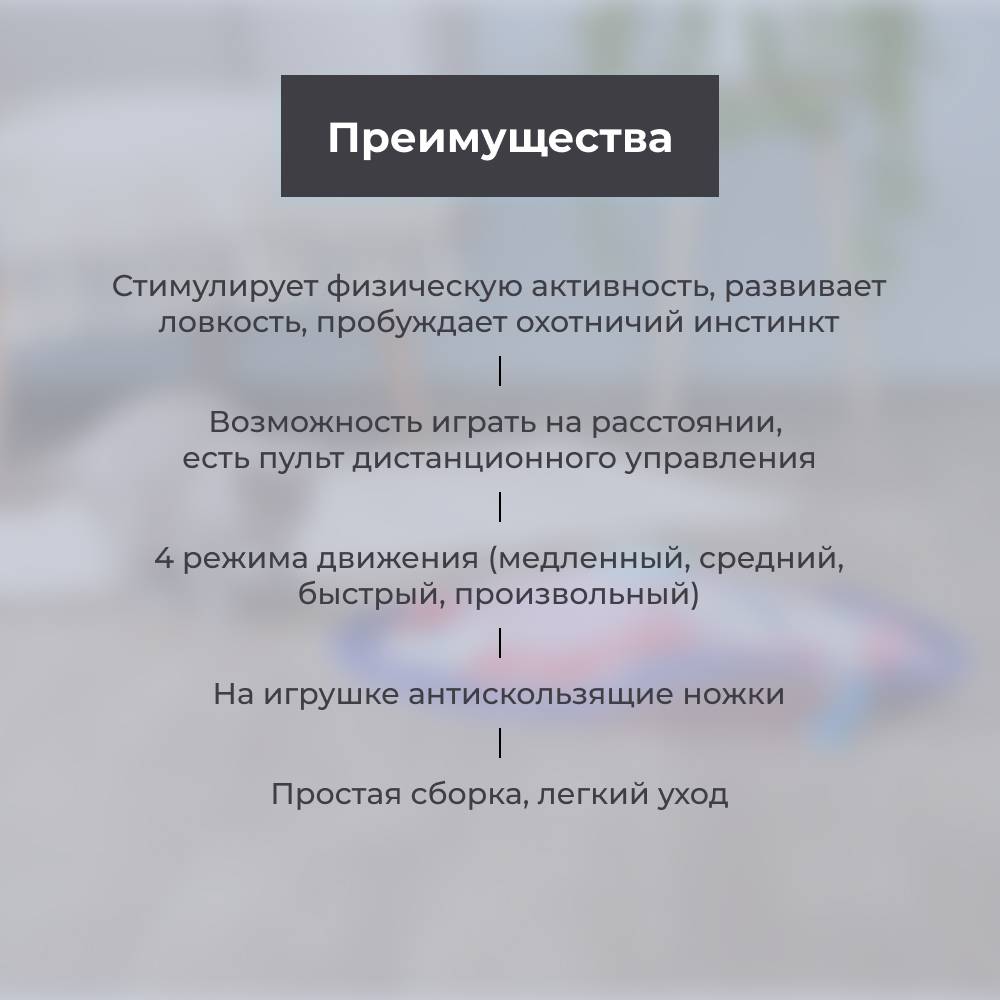 - Игрушка стимулирует физическую активность, развивает ловкость, пробуждает охотничий инстинкт.