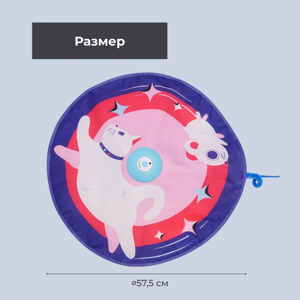 Размер: 8,5х14,5 см; длина рейки 20 см, игрушка хвост 16 см, мышка 13 см, диаметр чехла из ткани 57,5 см