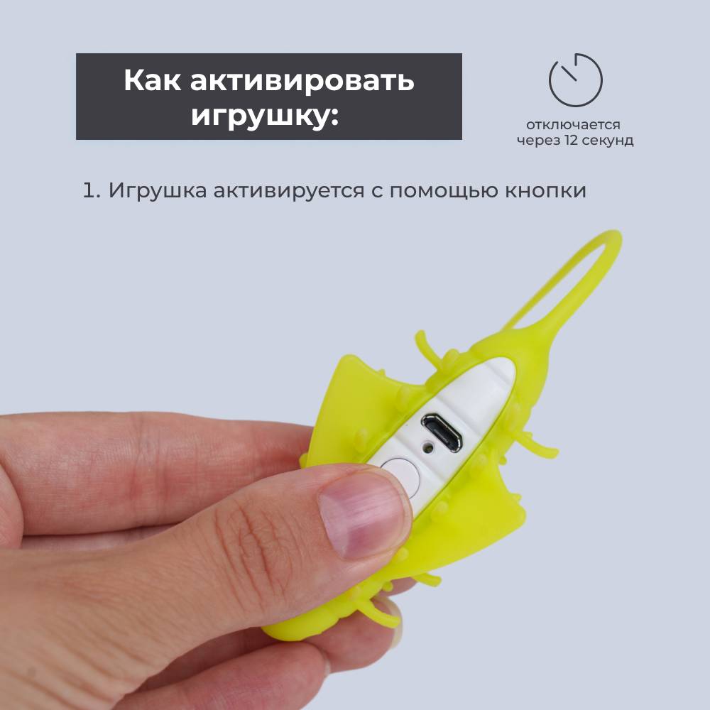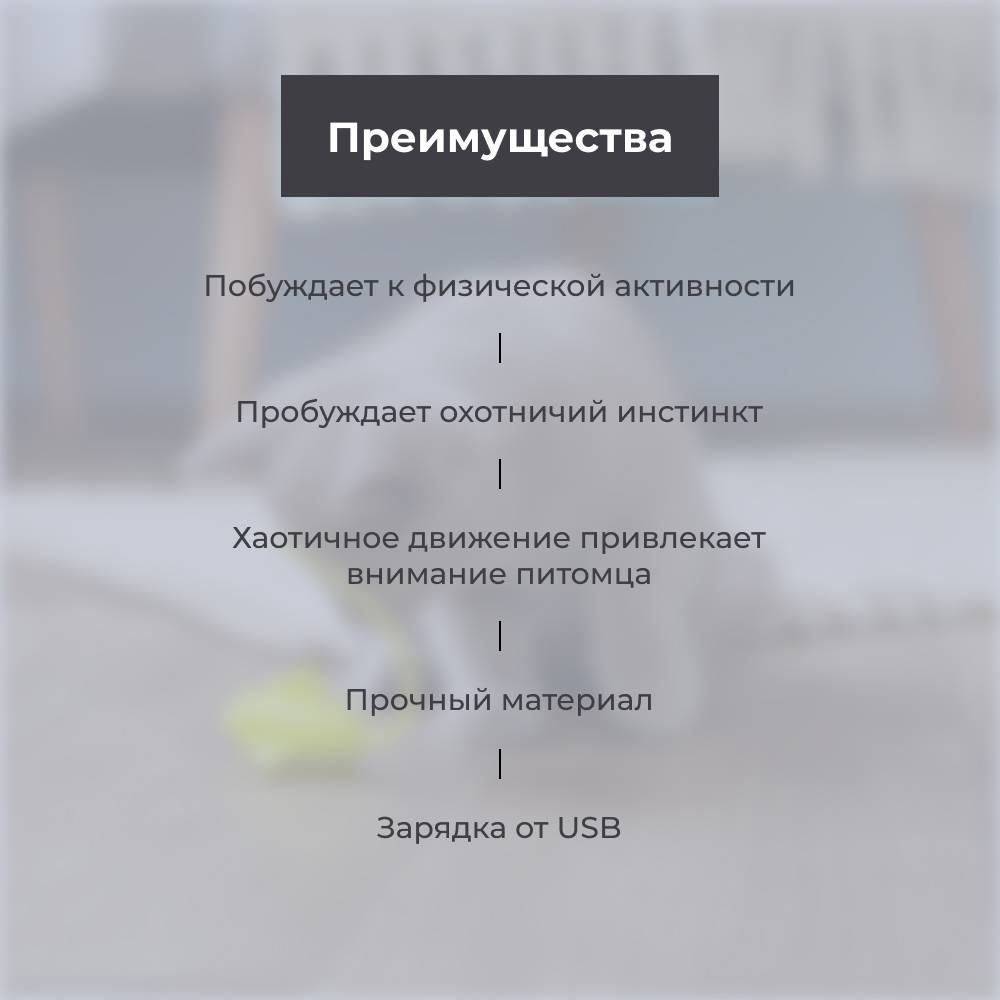 - Игрушка хаотично двигается, активируется с помощью кнопки.