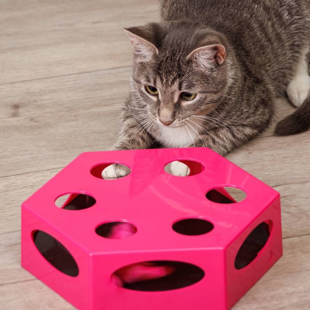 Интерактивная игрушка для кошек Коробка от бренда инновационных товаров HiPet надолго займет вашего питомца и отвлечет его от игр с мебелью и предметами интерьера.
