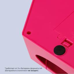 - Есть кнопка включения и выключения, работает от 3-х батареек формата АА (батарейки в комплект не входят).