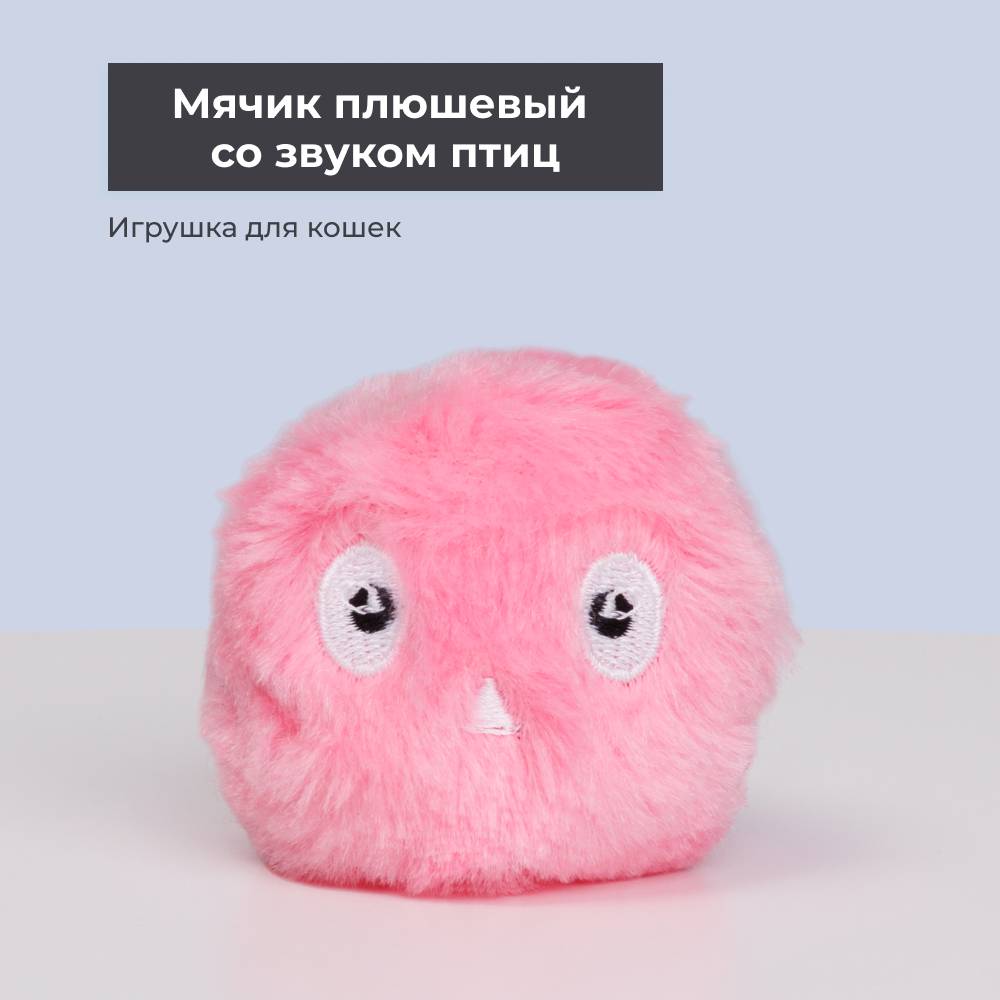 HiPet Игрушка для кошек Мячик плюшевый со звуком, 5,5 см, розовый