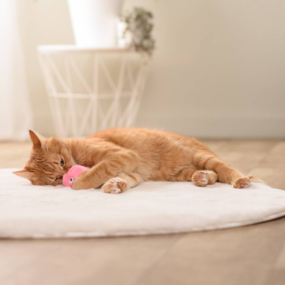 У кошки не должно быть возможности проглотить изделие целиком или какие-либо его части. Если любимец склонен к поеданию несъедобных предметов, давайте игрушку под присмотром.