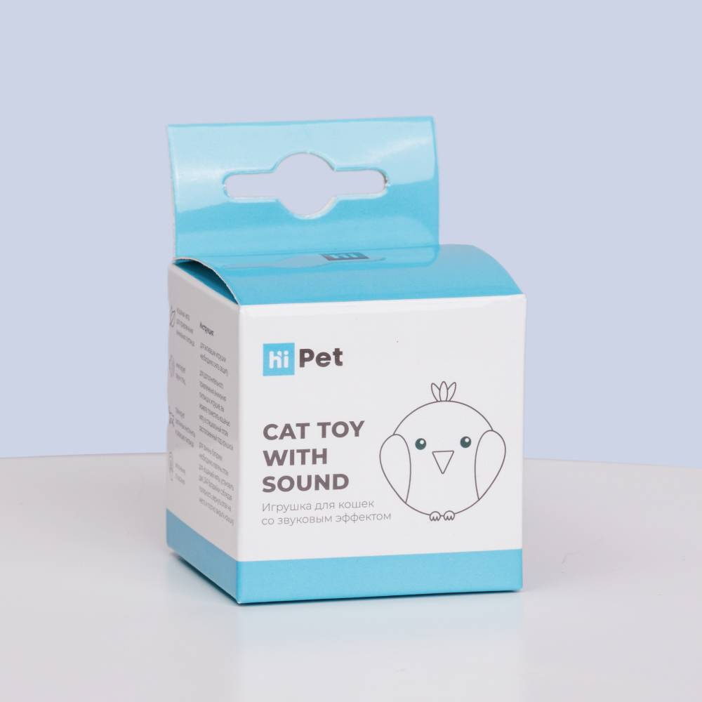 Плюшевый мячик для кошек со звуковым чипом от бренда HiPet стимулирует охотничьи инстинкты и тренирует реакцию питомца.