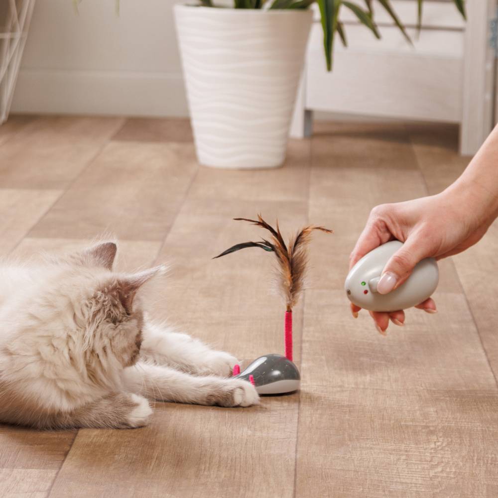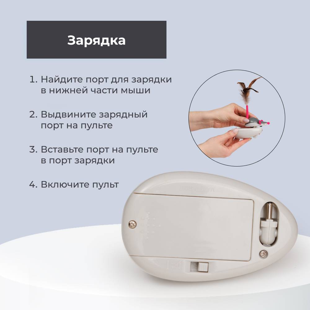 Радиоуправляемая игрушка для кошек Мышка с перьями от бренда HiPet предназначена для увлекательной активной игры пет-родителя с усатым питомцем.