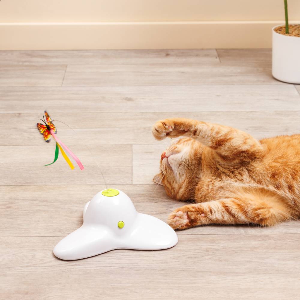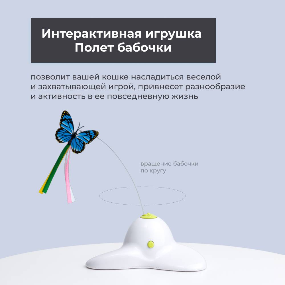 Интерактивная игрушка для кошек Полет бабочки от бренда инновационных товаров HiPet надолго займет вашего питомца и отвлечет его от игр с мебелью и предметами интерьера.