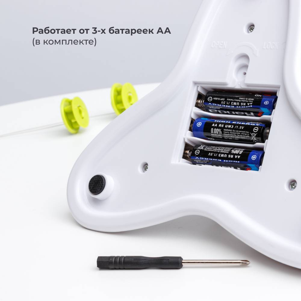 - В комплекте 3 батарейки (АА (1.5V), 2 насадки-бабочки и отвертка.
