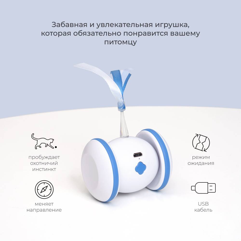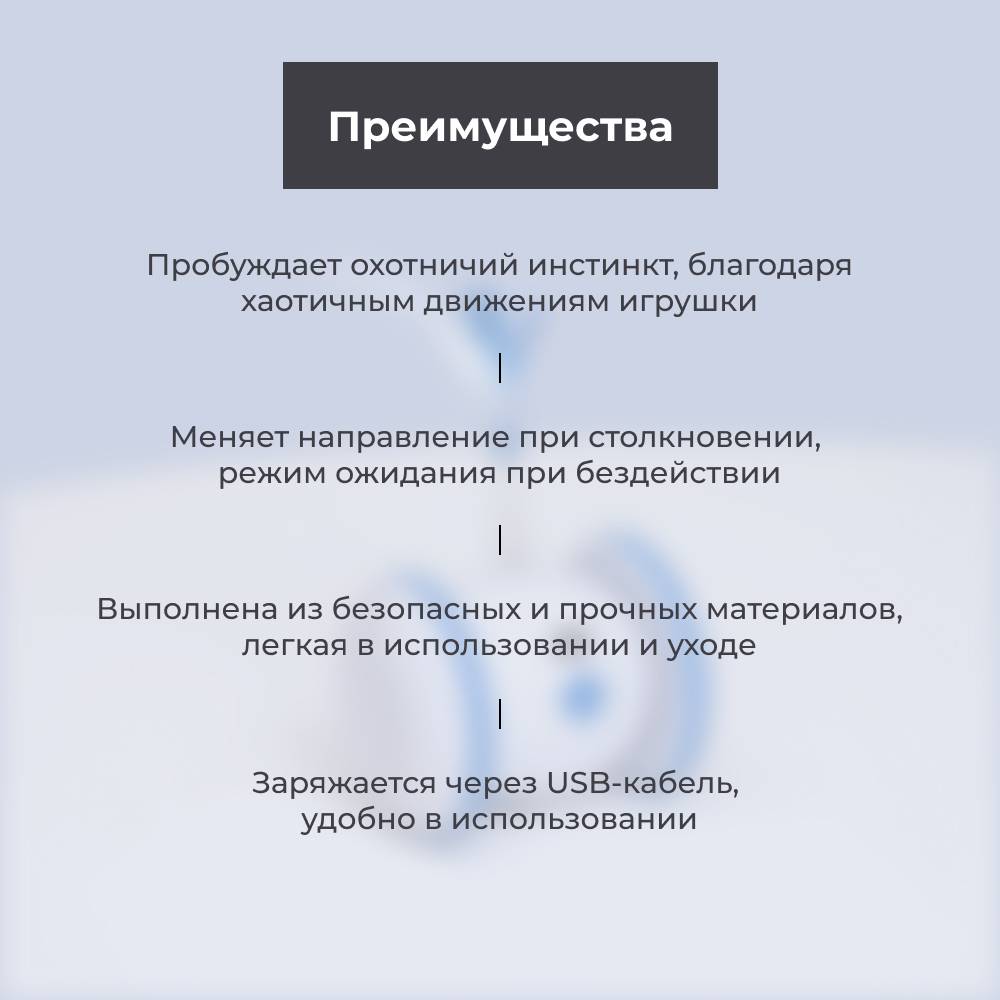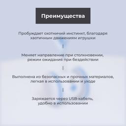 - Пробуждает охотничий инстинкт благодаря хаотичным движениям игрушки
