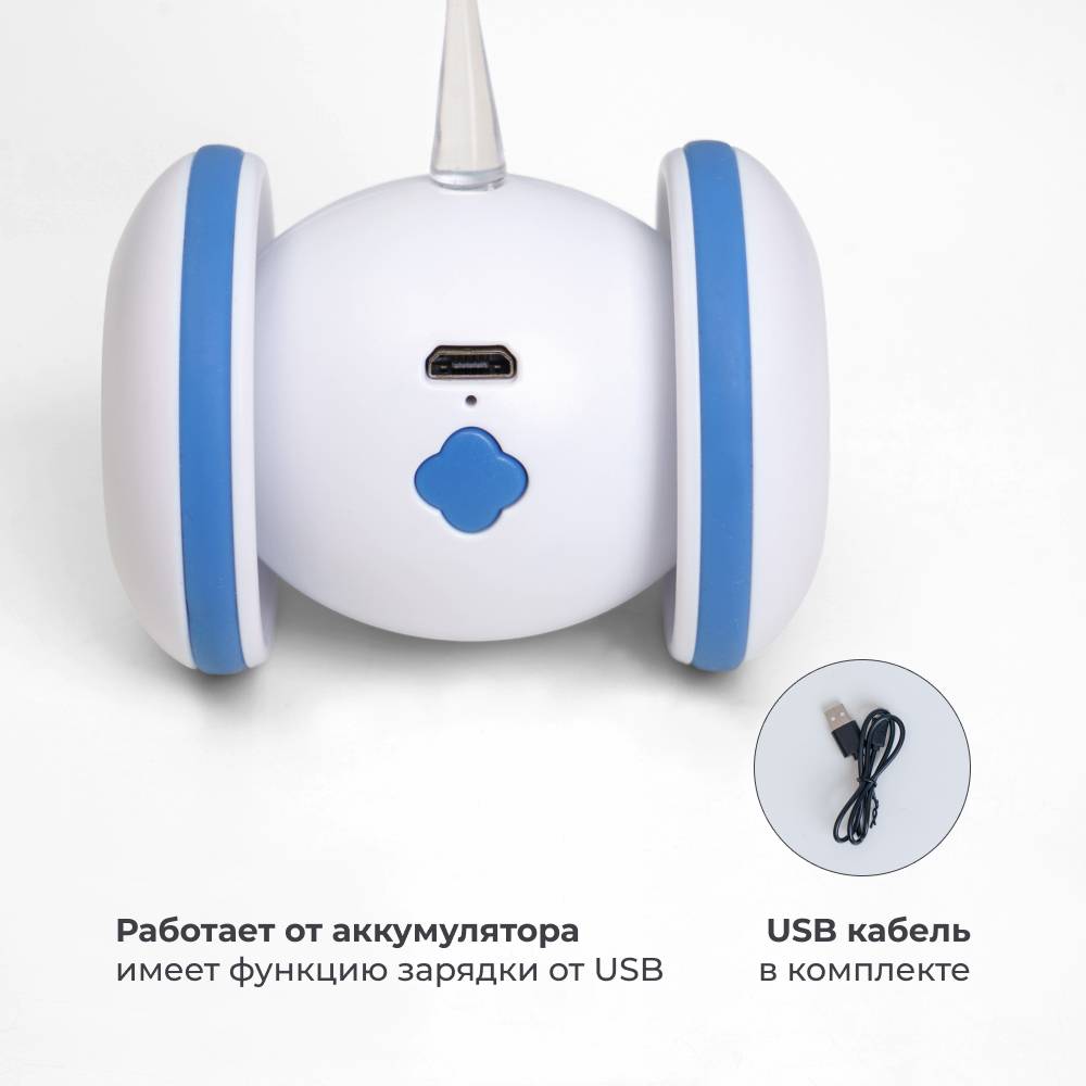 Игрушка работает от аккумулятора и имеет функцию зарядки от USB.