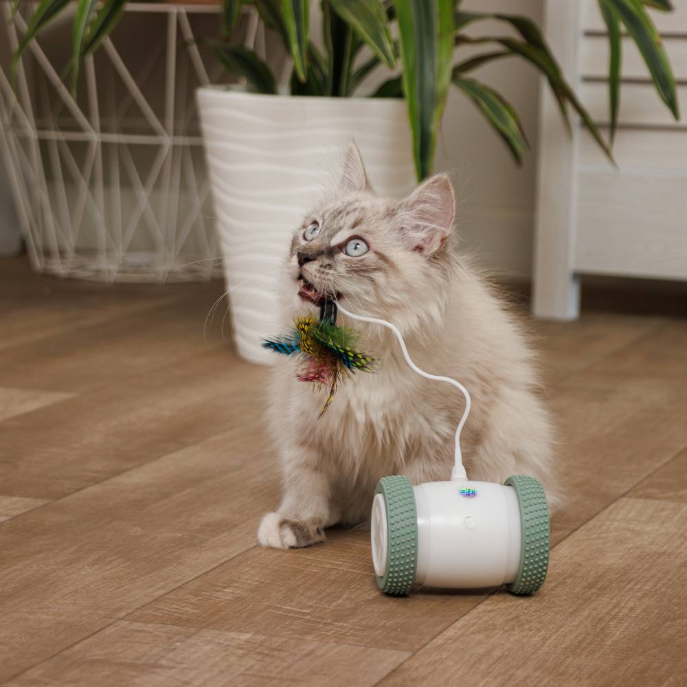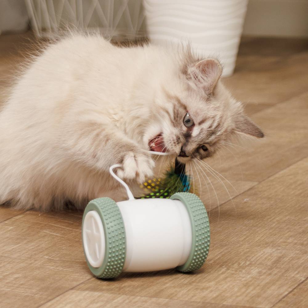 - Игрушка помогает поддерживать активный образ жизни кошки.