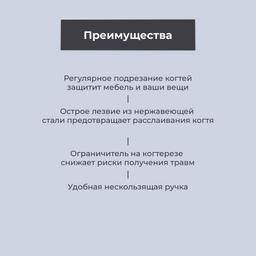 - Острое лезвие из нержавеющей стали предотвращает расслаивания когтя.