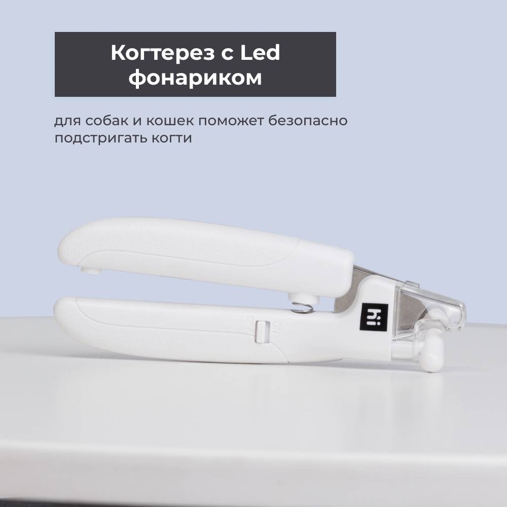 Когтерез с Led-фонариком для собак и кошек от бренда Hipet поможет безопасно обрезать когти вашему питомцу. Встроенный фонарик (работает от 3-х батареек LR44) просветит пластину когтя, чтобы не задеть кровеносный сосуд.