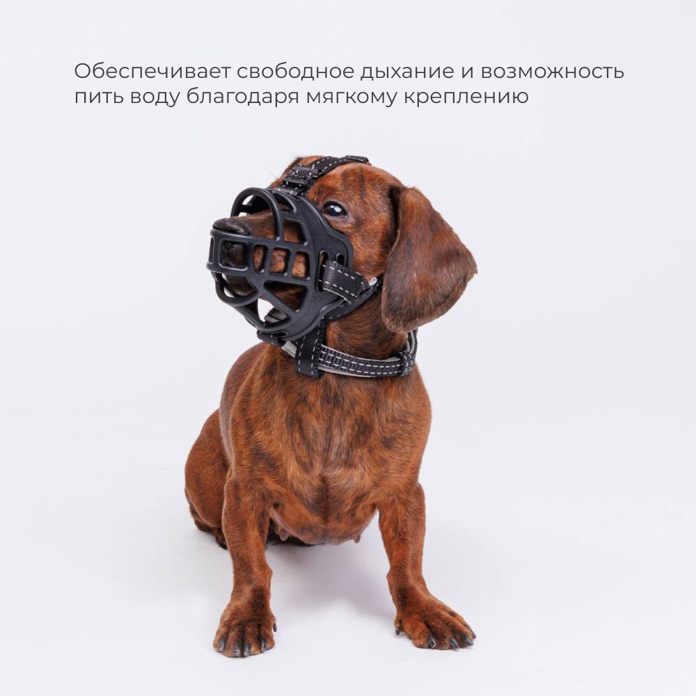 Намордник позволяет питомцу свободно дышать, пить и есть лакомства. Благодаря этому он отлично подходит для использования во время дрессировок.