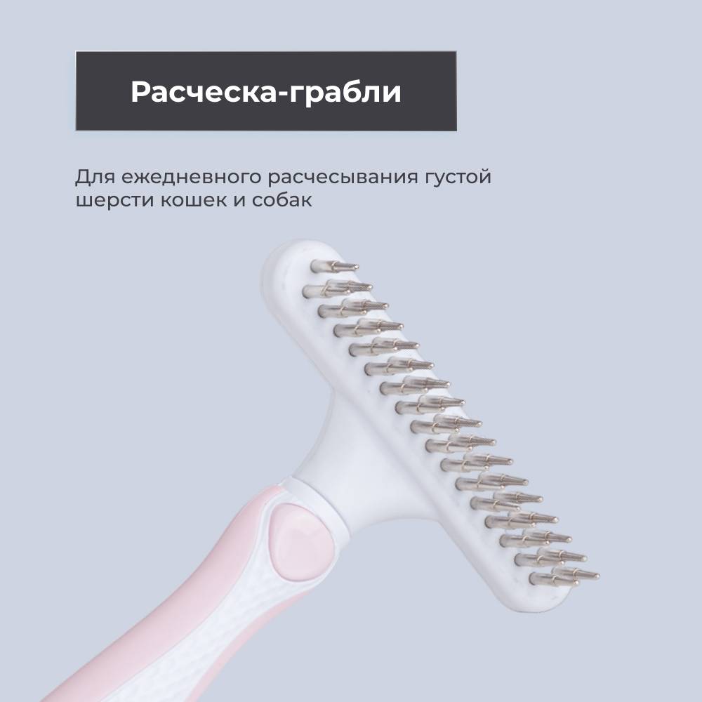 Расческа-грабли от бренда HiPet подходит для ежедневного расчесывания густой шерсти кошек и собак.