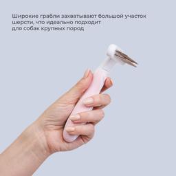 - Широкие грабли захватывают большой участок шерсти, в том числе длинной, что идеально подходит для собак крупных пород.
