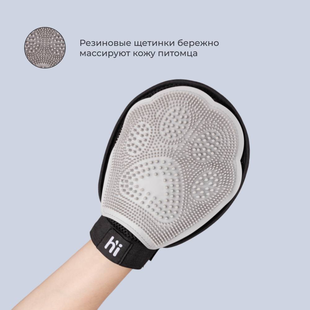 Рукавица для кошек и собак упростит уход за шерстью и превратит домашний груминг в приятную процедуру. Обратная сторона перчатки прошита специальным материалом, с помощью которого легко удалять шерсть с одежды и мебели.
