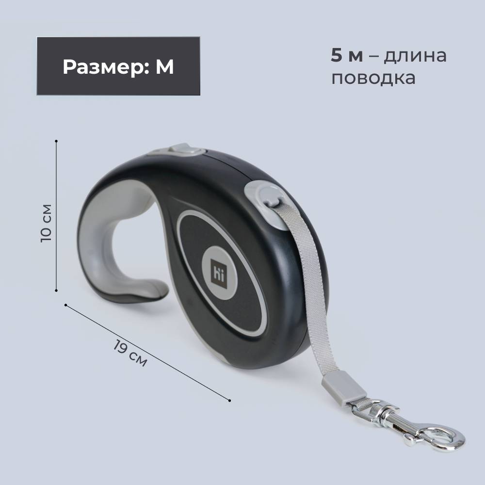 Размеры: М – 19х10х4 см; 5 м – длина поводка, 20 кг – максимальный вес собаки.