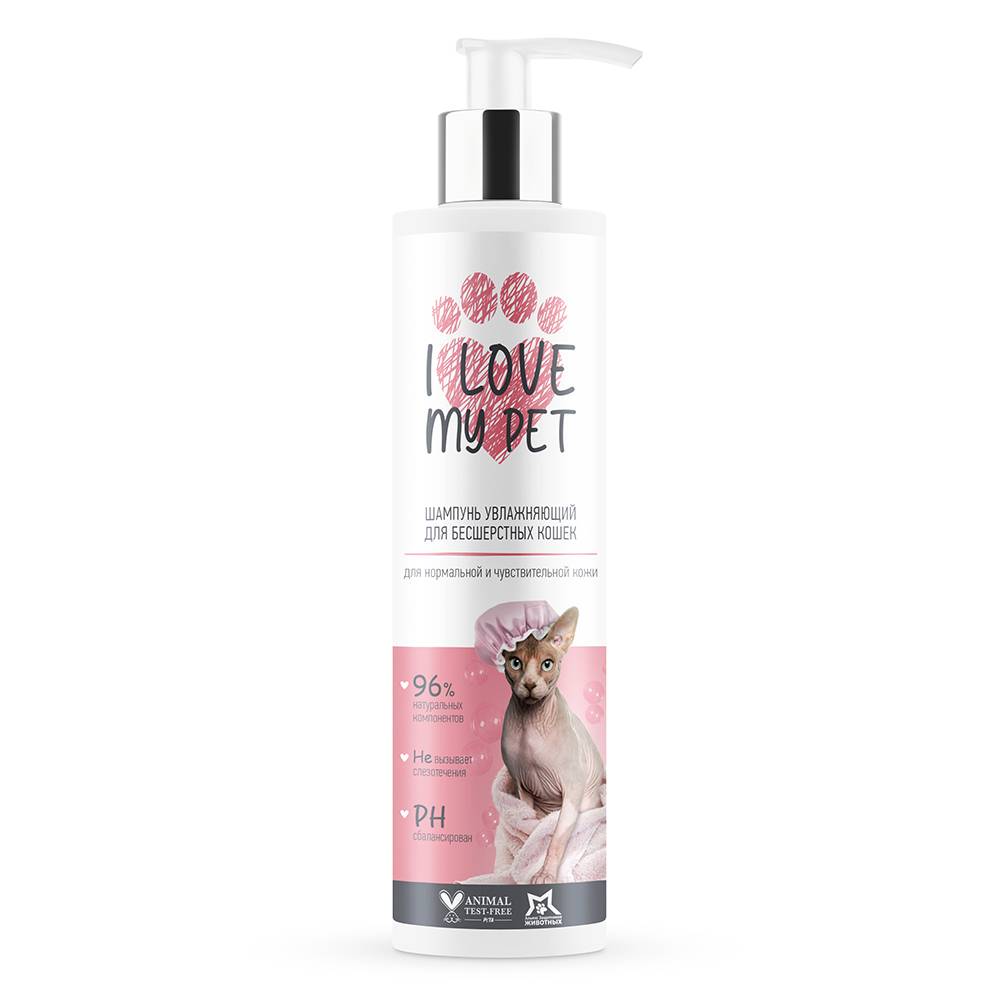 Специальный шампунь для бесшерстных пород кошек направлен на интенсивное увлажнение кожи во время мытья.
