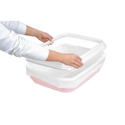 - После загрязнения наполнителя просто снимите верхнюю часть туалета, удалите пакет с использованным наполнителем, а в чистый лоток положите новый пакет в той же последовательности.