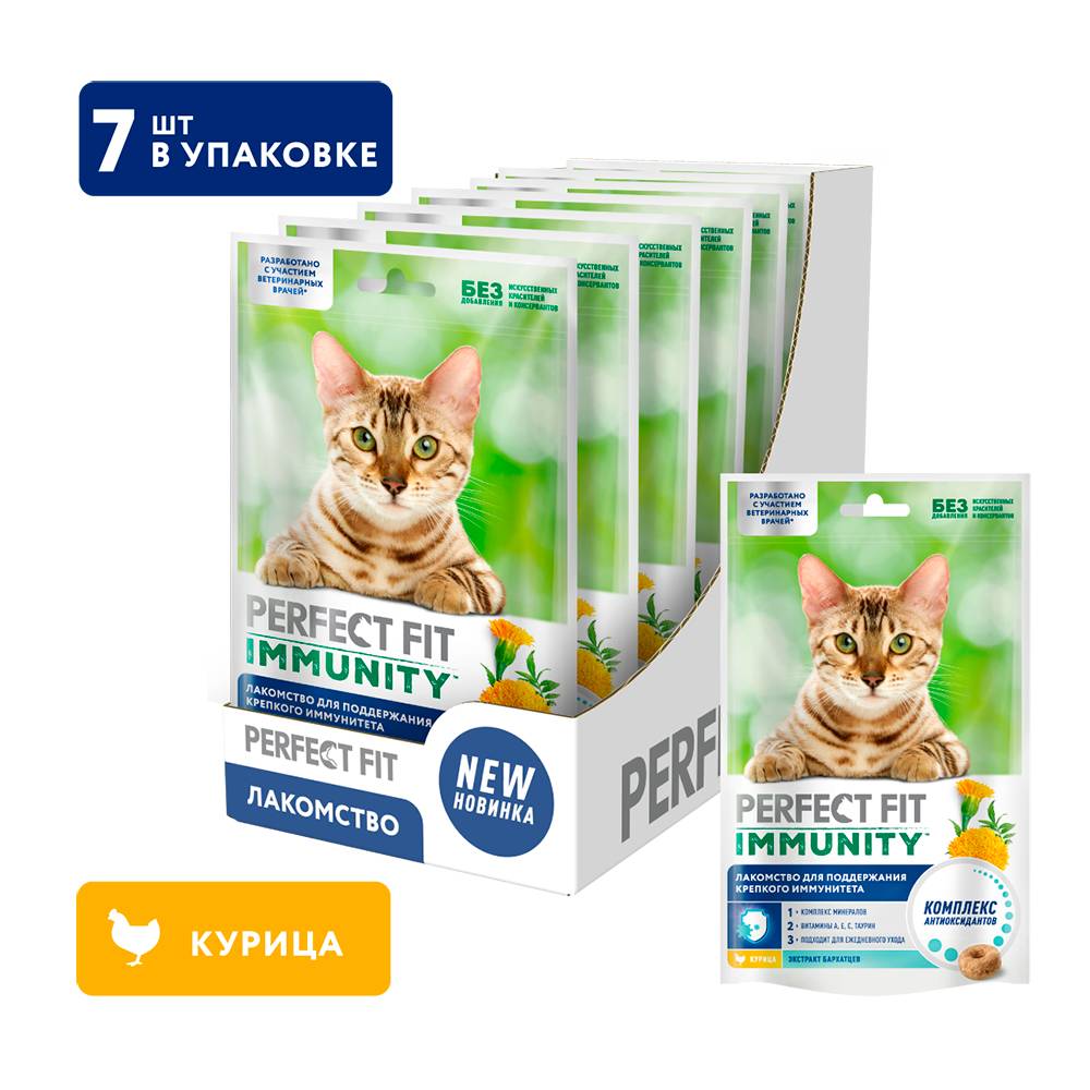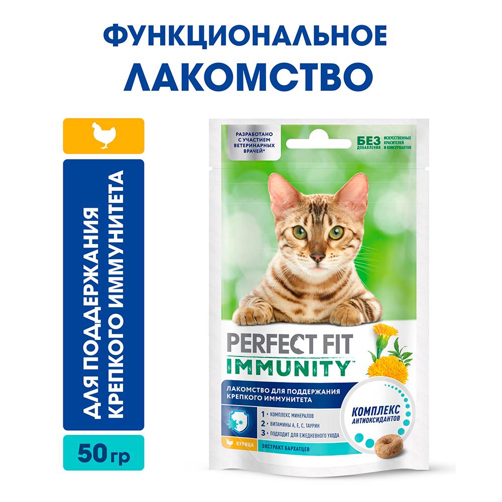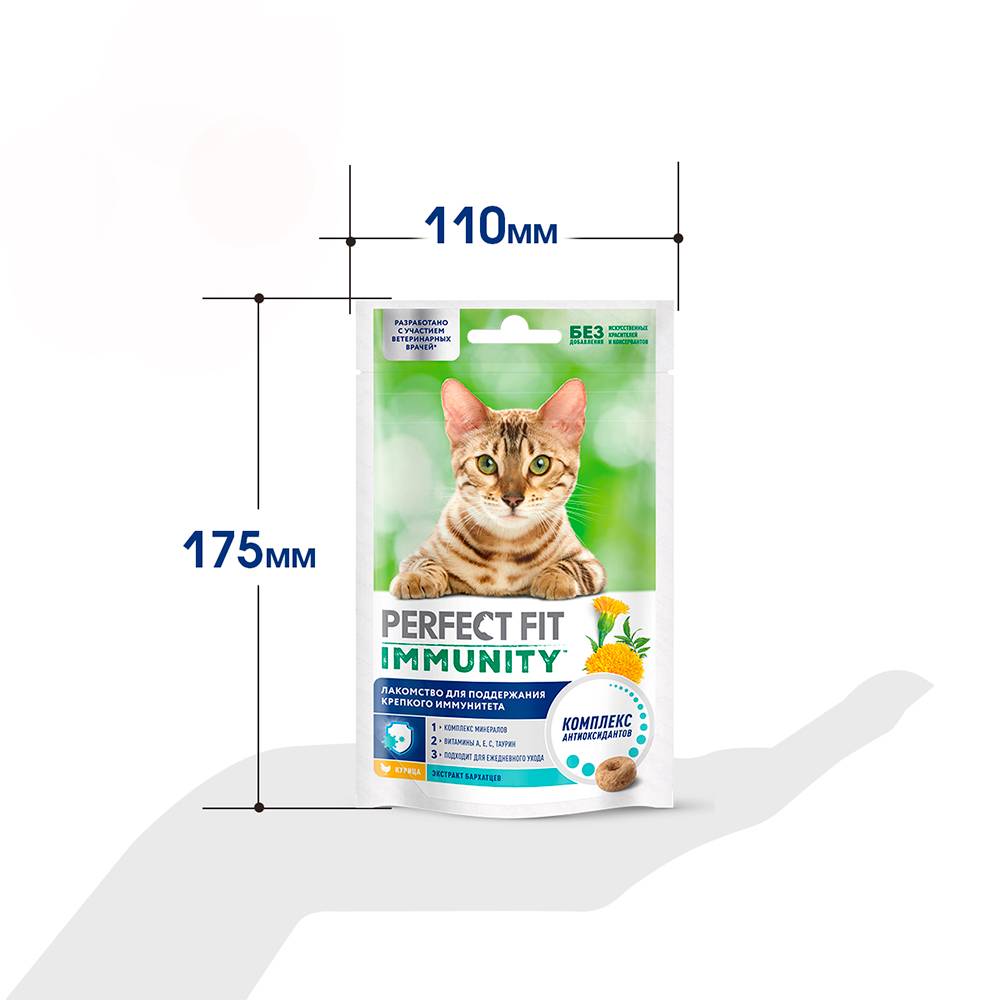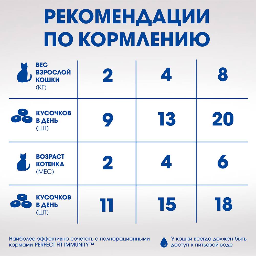 - Функциональное лакомство PERFECT FIT™ IMMUNITY подходит для котят от 4 месяцев и стерелизованных кошек.