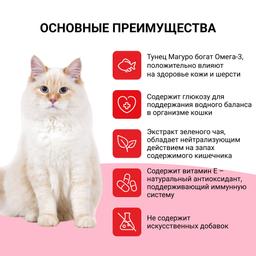 - Лакомство содержит глюкозу для поддержания водного баланса в организме кошки.