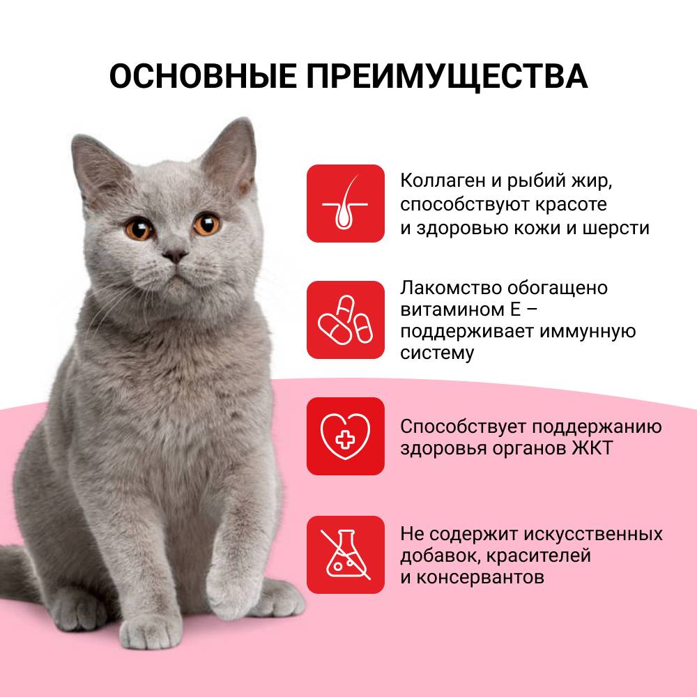Удобная упаковка позволяет кормить питомца прямо с рук, используя лакомство для поощрения или дрессировки или использовать его как топпинг к сухому или влажному корму.