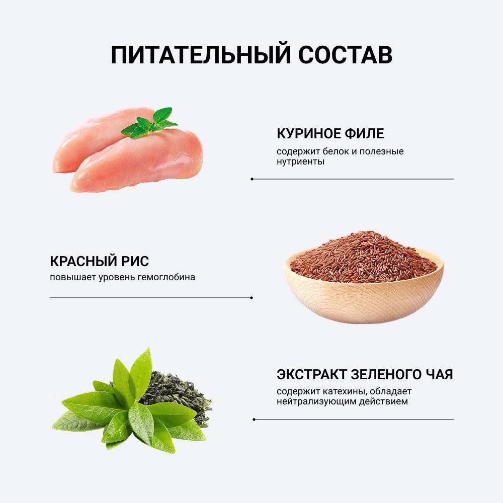 Во все продукты добавлен экстракт зеленого чая, который, благодаря содержанию катехина, нейтрализует неприятные запахи содержимого кишечника. Пюре-лакомство обогащено витамином Е - натуральным антиоксидантом, поддерживающим иммунную систему, не содержит искусственных добавок, красителей и консервантов.
