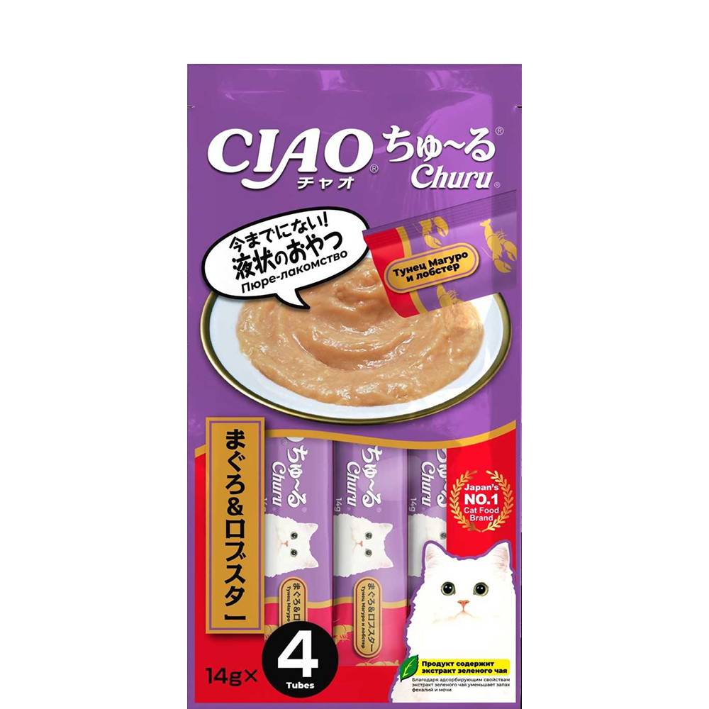 Супер-премиальное лакомство пюре CIAO Churu (ЧАО ЧУРУ) для кошек на основе кусочков мяса глубоководного тунца Магуро с добавлением лобстера от японского производителя Inaba изготовлено исключительно из натуральных полезных ингредиентов и отличается высоким процентом влажности, благодаря чему поддерживается водный баланс организма кошки. Кремовая текстура, напоминающая пюре или суп, подойдет даже самым привередливым кошкам и котам или кошкам с чувствительным пищеварением.