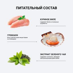 Во все продукты добавлен экстракт зелёного чая, который, благодаря содержанию катехина, обладает нейтрализующим действием на запах содержимого кишечника. Лакомство обогащено витамином Е — натуральным антиоксидантом, поддерживающим иммунитет животного. Не содержит искусственных добавок, красителей и консервантов, поэтому подойдут животным с чувствительным пищеварением.