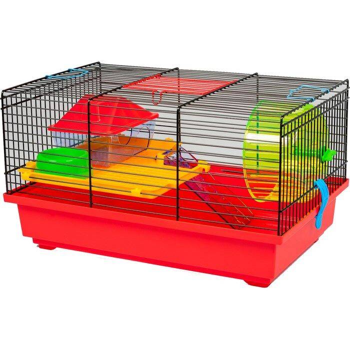 Клетка для грызунов с пластиковым комплектом.В комплект входит: пластиковый поддон, лестница, дополнительный этаж, колесо, домик, кормушка.Материал: экологически чистый пластик, крашеный металл. Размеры: 430 х 280 х 235 мм.Производитель: Inter-Zoo, Польша