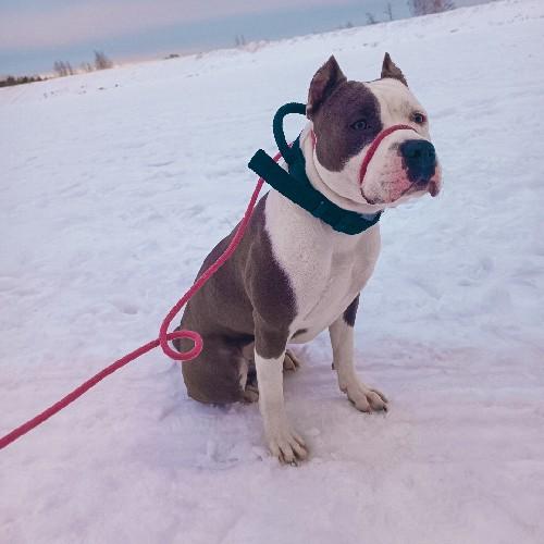 Брала на амстафа . Мальчишка ещё молод, делает резкие рывки, петля помогает удержать. За несколько месяцев использования не порвался и даже не деформировался. Рекомендую.
