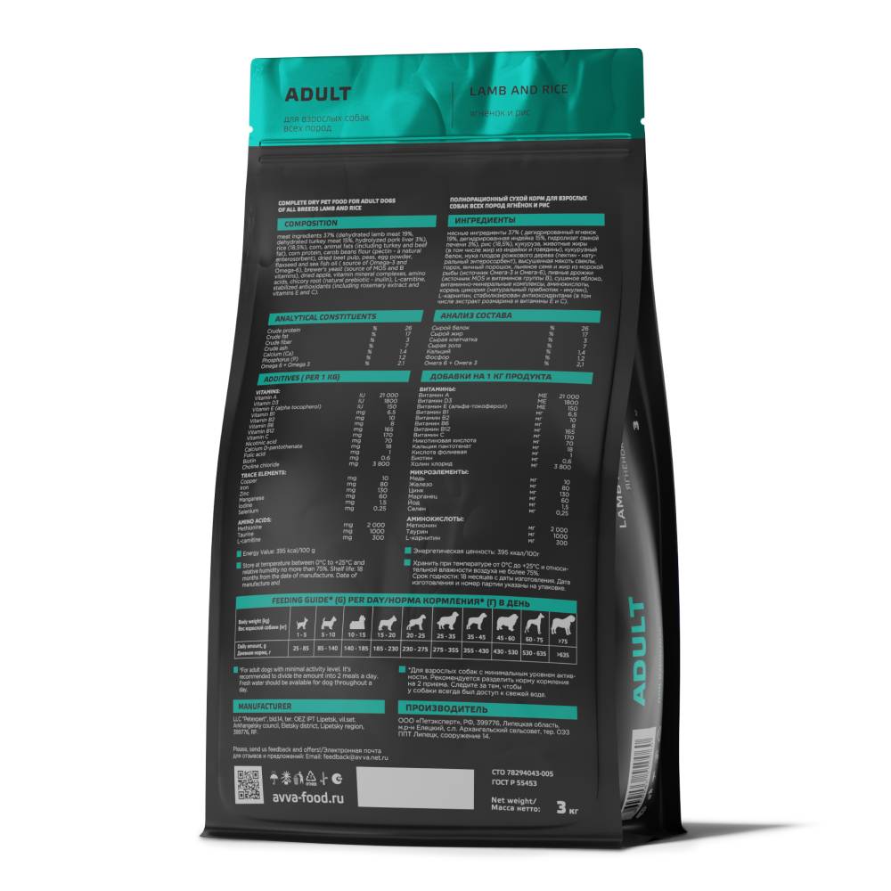 АВВА Adult Сухой корм для собак всех пород, ягненок и рис, 3 кг