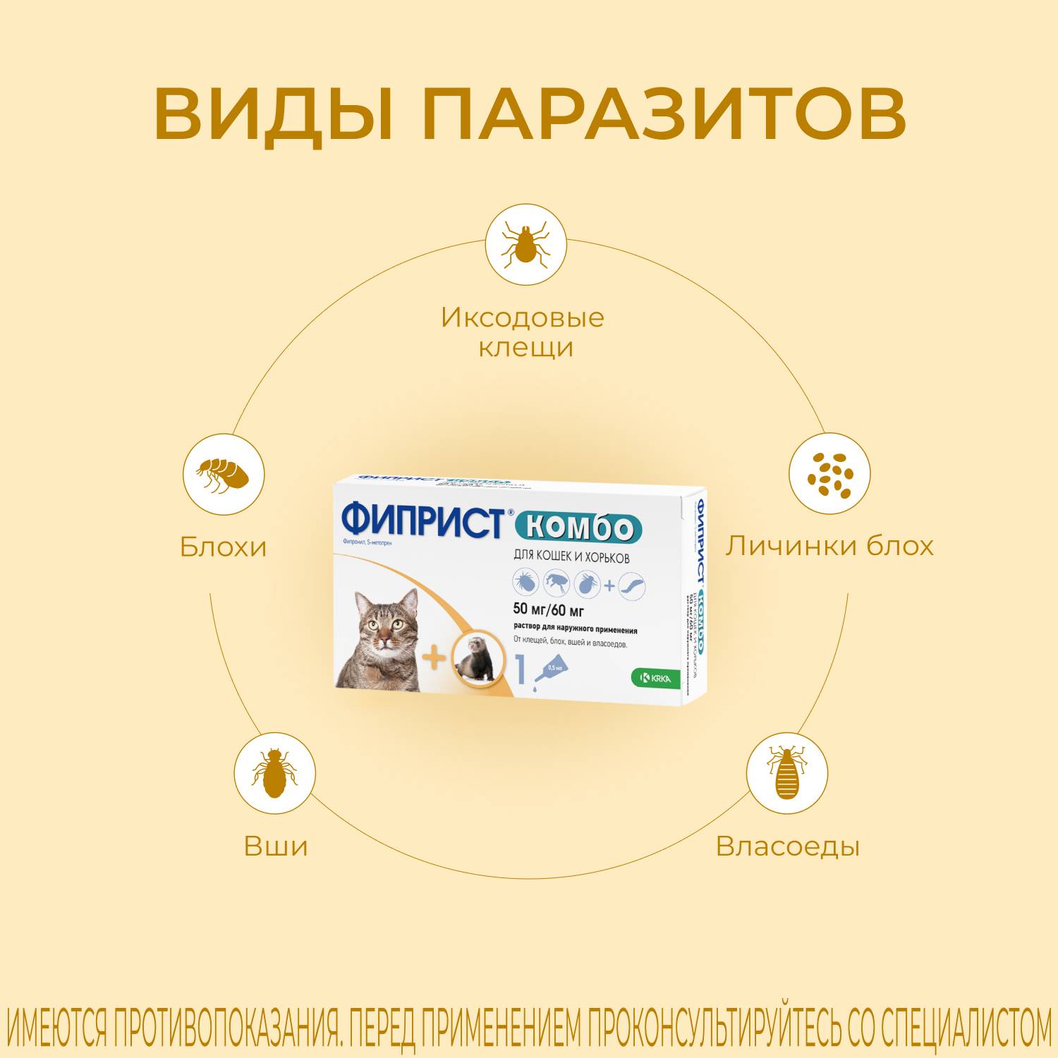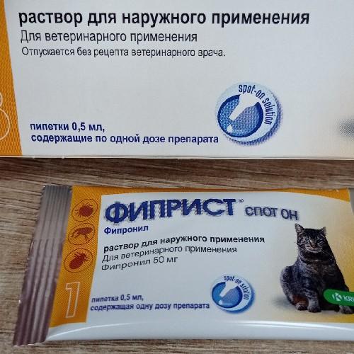 Фиприст Спот Он обладает выраженным инсектицидным и акарицидным действием в отношении всех фаз развития вшей, блох, власоедов и клещей (иксодовые, хейлителлы, отодектосы), паразитирующих на кошках.