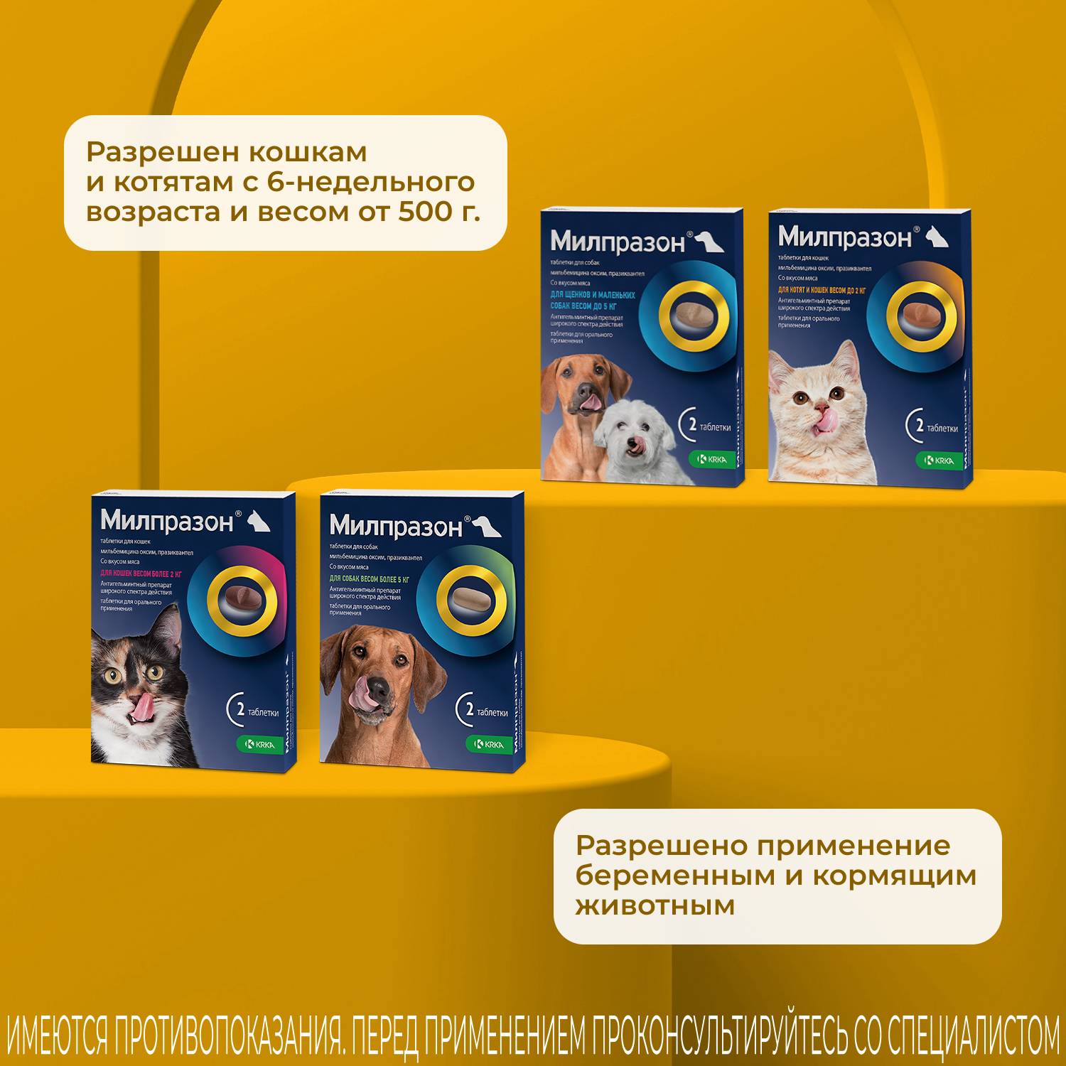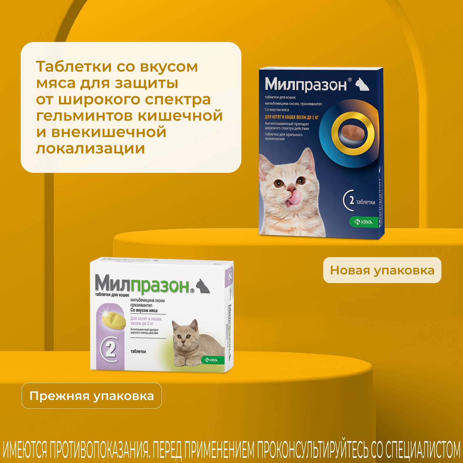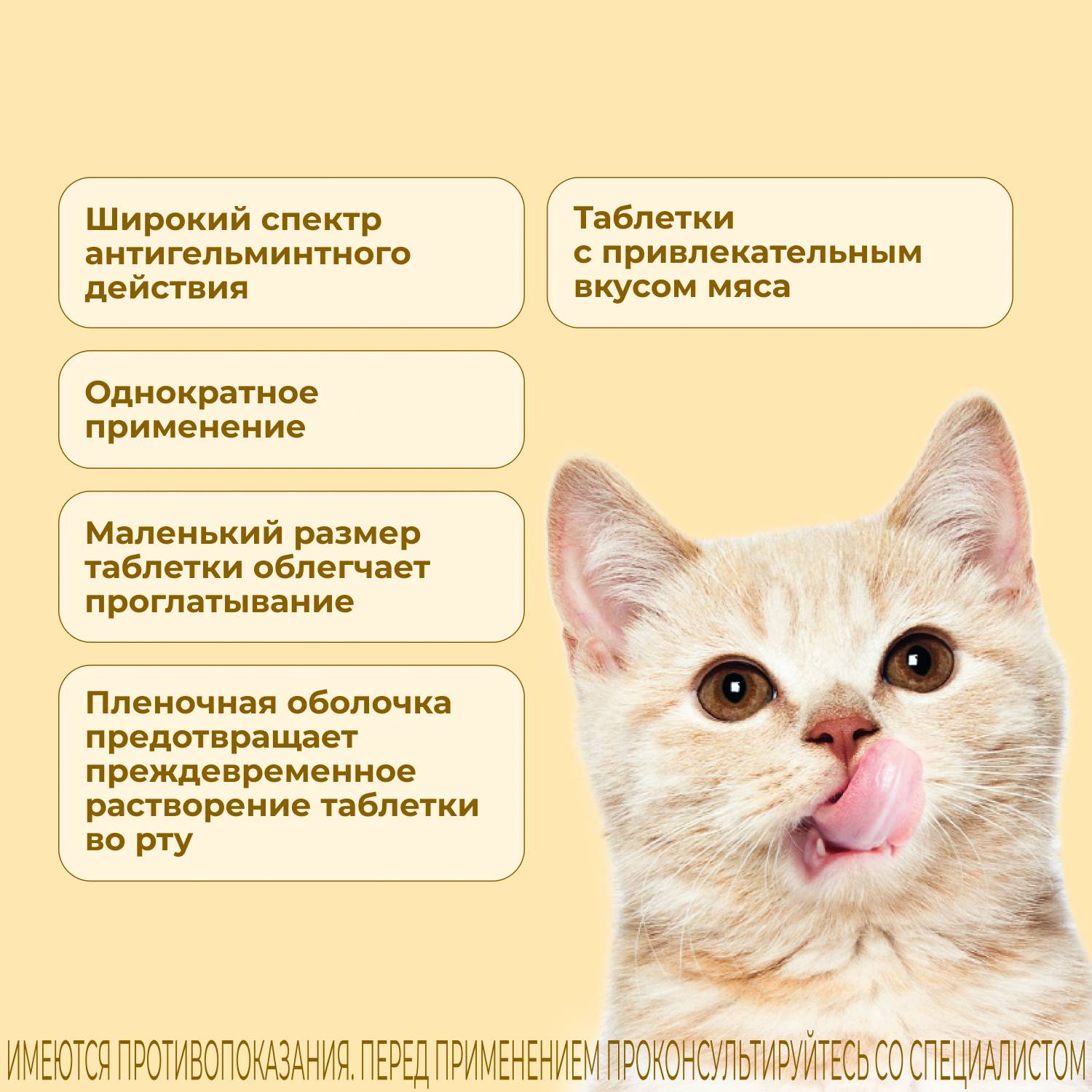 Противопоказанием к применению является индивидуальная повышенная чувствительность животного к компонентам препарата (в том числе в анамнезе), выраженные нарушения функции почек и печени. Не следует применять препарат котятам моложе 6-недельного возраста и массой менее 0,5 кг. Не подлежат дегельминтизации истощенные и больные инфекционными болезнями животные.