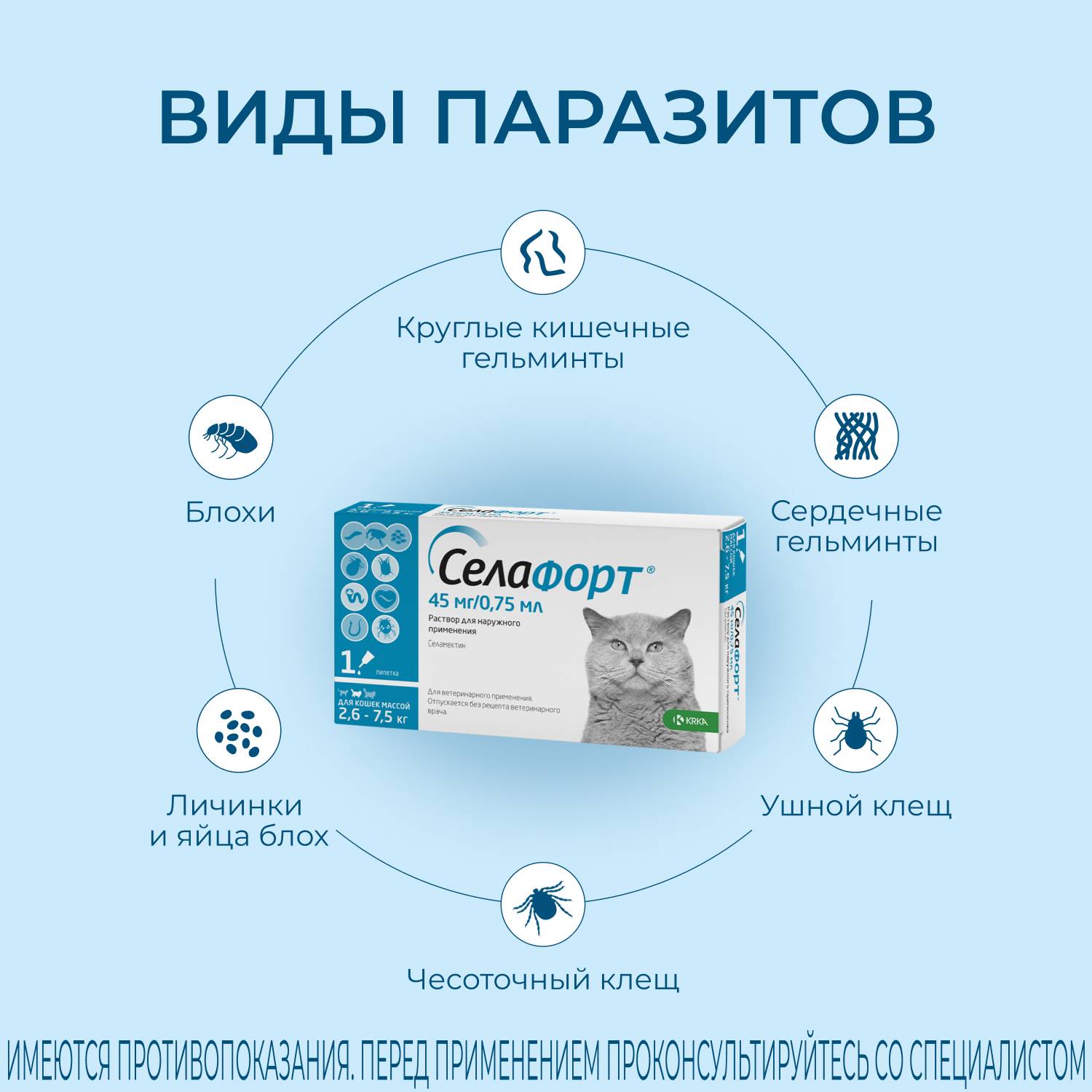 Беременным и лактирующим самкам при необходимости Селафорт применяют после консультации с ветеринарным врачом. Селафорт не следует применять щенкам и котятам моложе 6-недельного возраста.