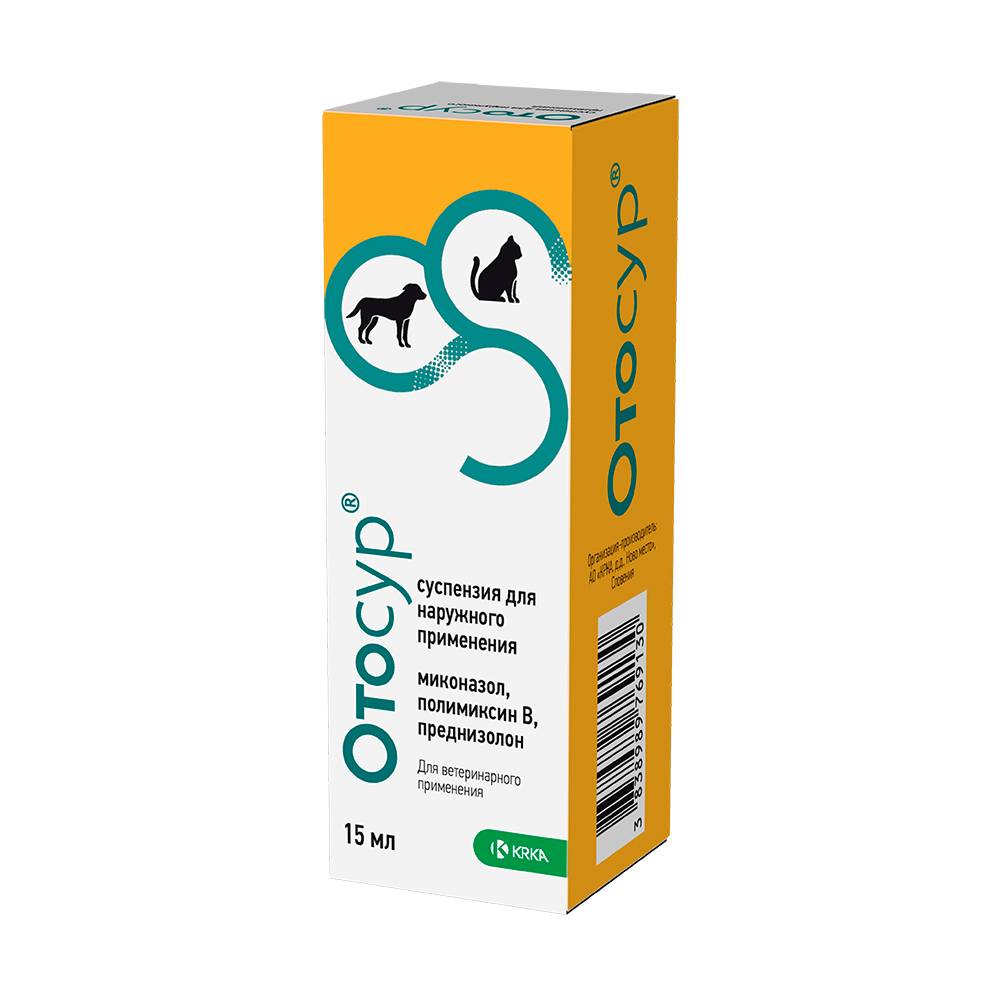 Отосур - суспензия для лечения наружных отитов и заболеваний кожи у собак и кошек.