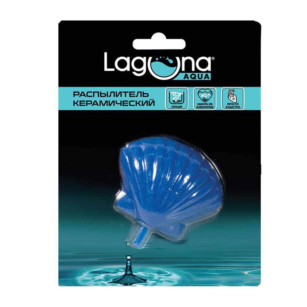 Распылитель предназначен для аэрации воды в аквариуме. Декоративный распылитель в виде морской раковины изготовлен из песка, смешанного с полиэфирной смолой, что обеспечивает ему мелкопористую структуру. При этом воздух, проходя через распылитель, дробится на большое количество воздушных пузырьков, которые активно насыщают кислородом аквариумную воду.