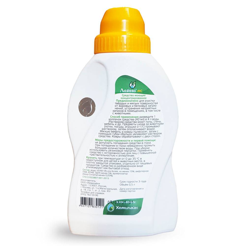 Концентрированное моющее средство «Лайна-МС спрей» специально разработано для устранения неприятных запахов и удаления различных видов загрязнений.