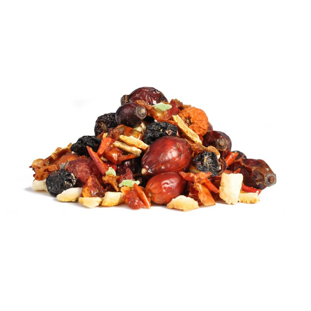 Шиповник, черная смородина, сладкий красный перец, цедра апельсина, сушеный киви.